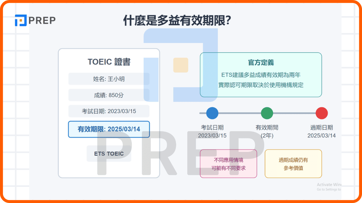 許多準備 TOEIC 的考生,常常忽略一個關鍵問題:成績的有效期限。根據官方規定,TOEIC 成績效期為 兩年。換句話說,無論你拿到多高的分數,兩年後它都將失效,不能再作為正式的英語能力證明。想深入了解,可參考 TOEIC 有效期限詳細解析。